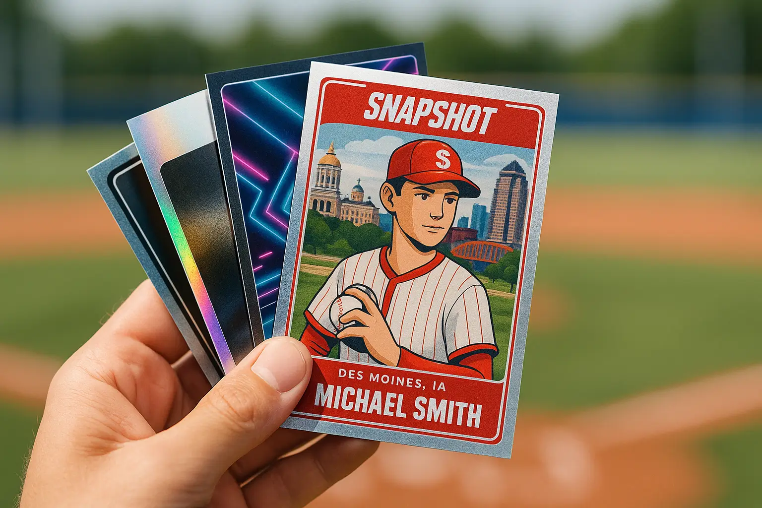 Transform any photo or video frame into custom sports cards you can hold, trade, and collect. Created in seconds, printed like the pros.